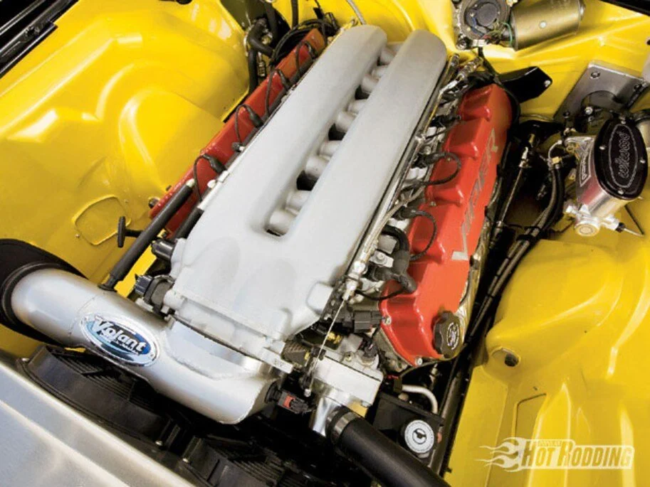 To accept the V10, the Challenger's firewall must be moved rearward 4 to 6 inches, something that no home wrench would feel comfortable with. The V10 maintains a long, flat-bottom sump that requires a higher-than-normal engine mounting location to clear the steering and suspension. In the Charger of old, the four-link worked great laying down straight lines, but was a detriment to precise, fluid handling characteristics.