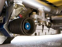 In turn, these modifications relinquished quite enough clearance to narrow the width of the track substantially so that the 285/35 tires (on 9-inch wheels) don't bump into the fenders or framerails. To situate the motor in the desired location ahead of the stock firewall, they developed a rear-steer, center-steer power rack ahead of the engine, and behind the radiator cowl, and an adjustable Z-bar steering linkage that correctly places the tie rods and reverses the travel direction of the rack.